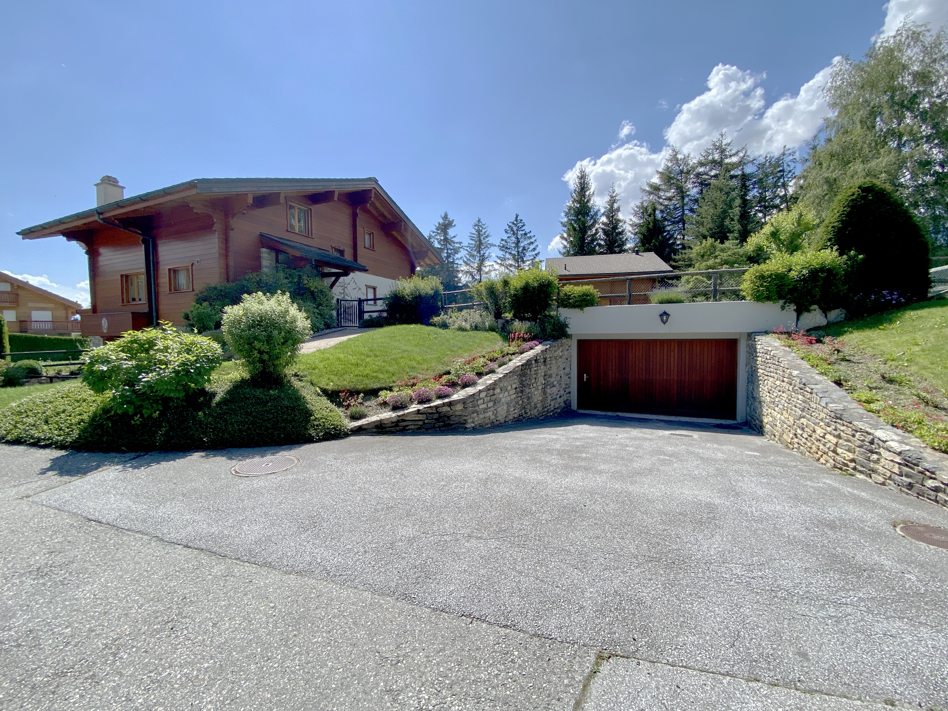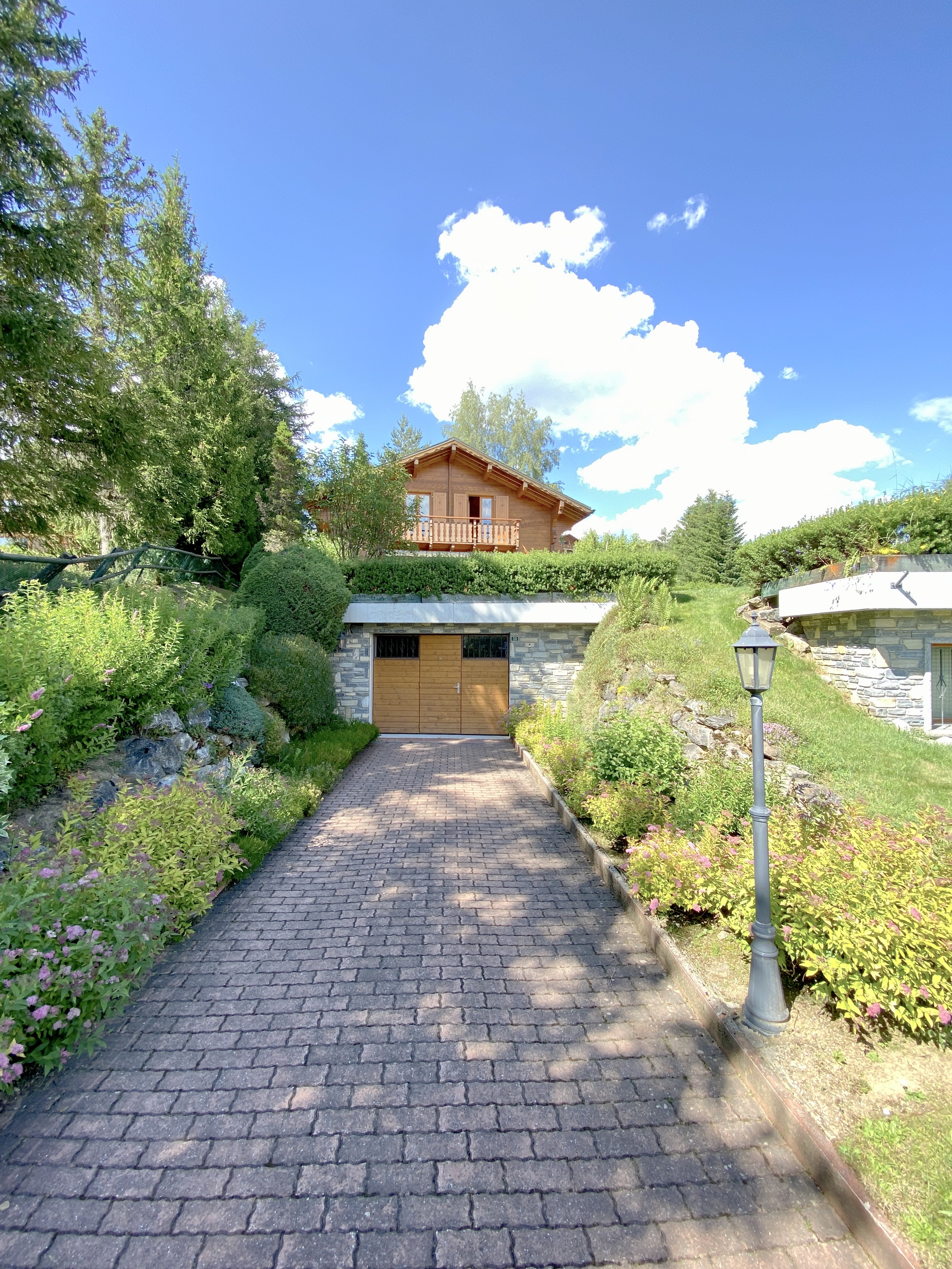 Sunimmo offers a rare opportunity in Crans-Montana to acquire a complex of two chalets united by a 380 m2 space allowing all possible projects: swimming pool, terrace, wellness area, gym and home cinema.